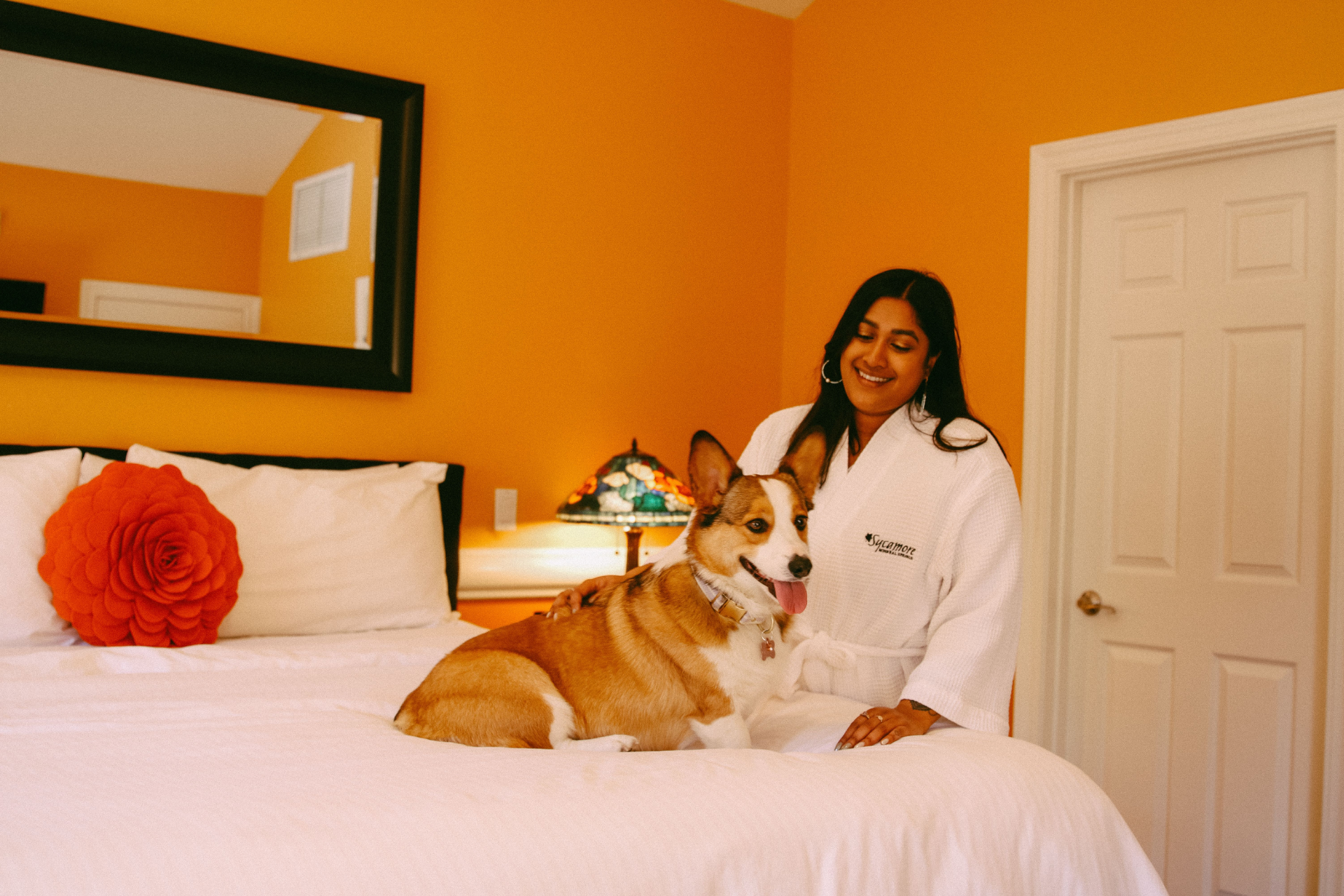 Our VIPs (Very Important Pups) receive a doggie bed, water bowl, and a dog toy set in your room for your stay! The required Dog Fee is $65 per night for the first 3 nights (max $195). The fee also covers specialty housekeeping for furry friends. Maximum 2 dog per room. Sycamore has no breed limits or weight limits. Big or small, we LOVE them all!