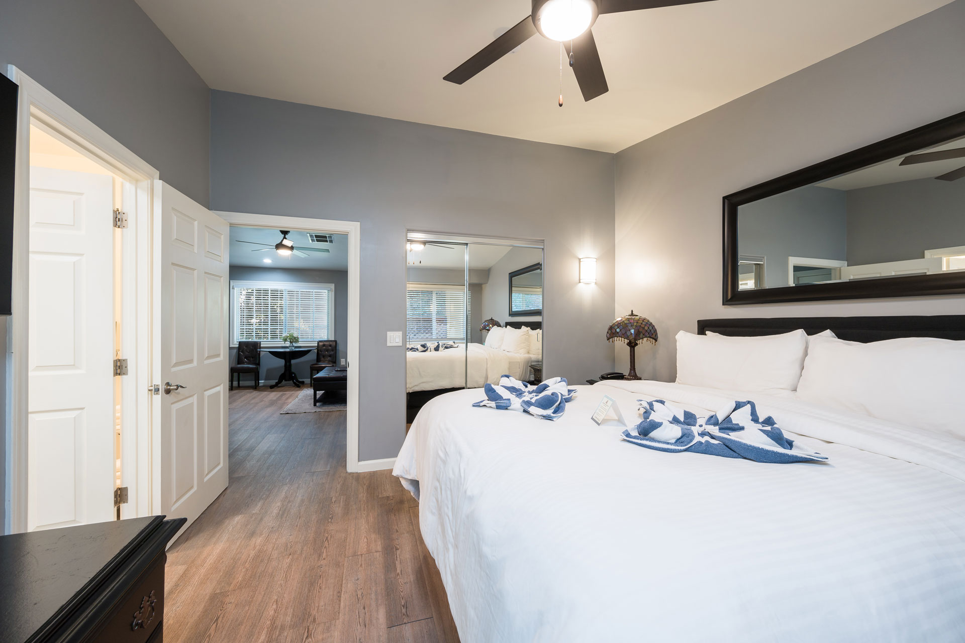 No two are exactly alike! Each suite offers its own charm with variations in layout, color scheme, and mineral tub features. See examples of this type below. If you have questions or preferences, please call (805) 595 – 7302 and reservations will be happy to find you the right fit.
