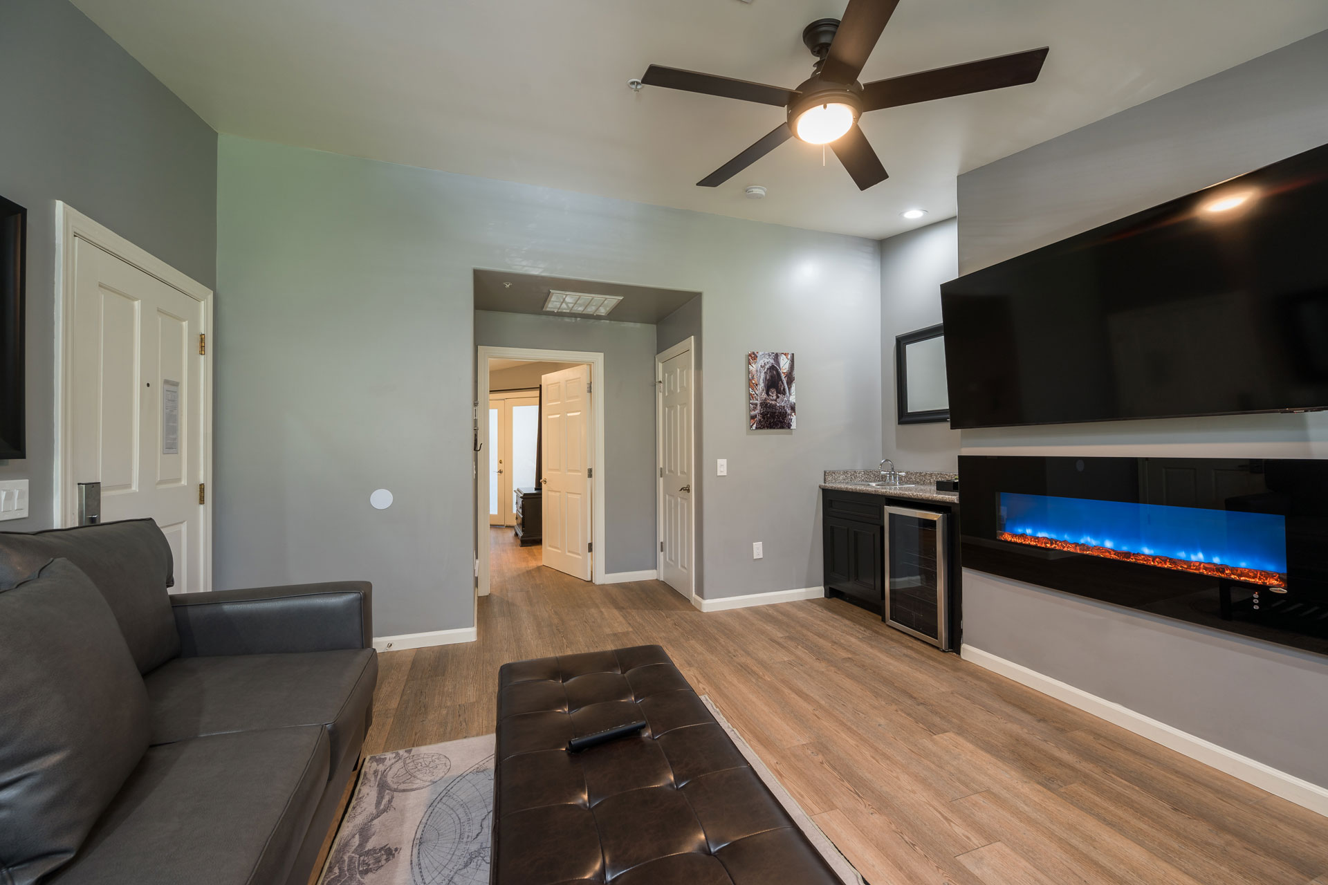 - Wet bar with mini fridge and coffee maker