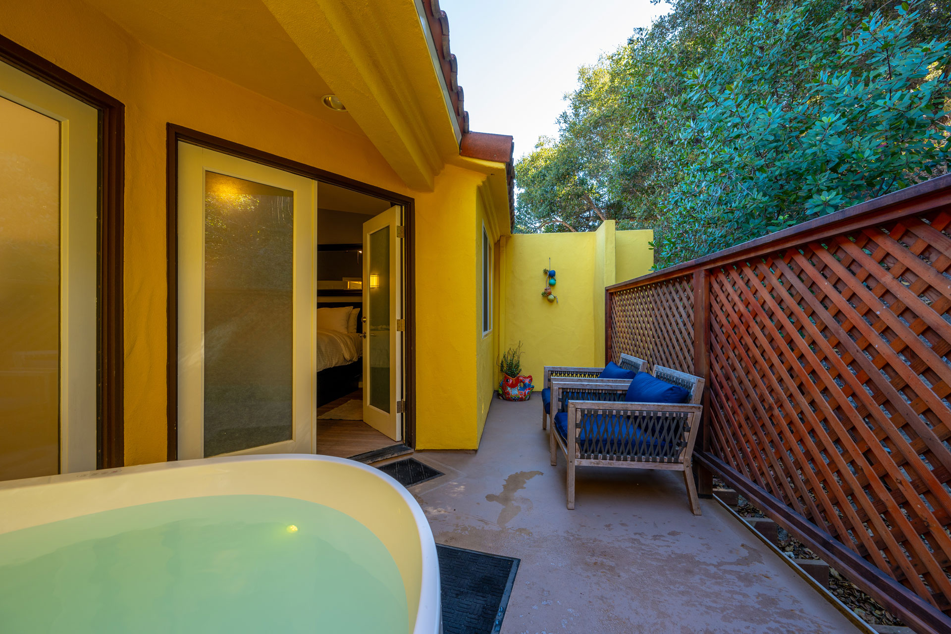 - Private patio with a mineral spring tub and cozy sitting area