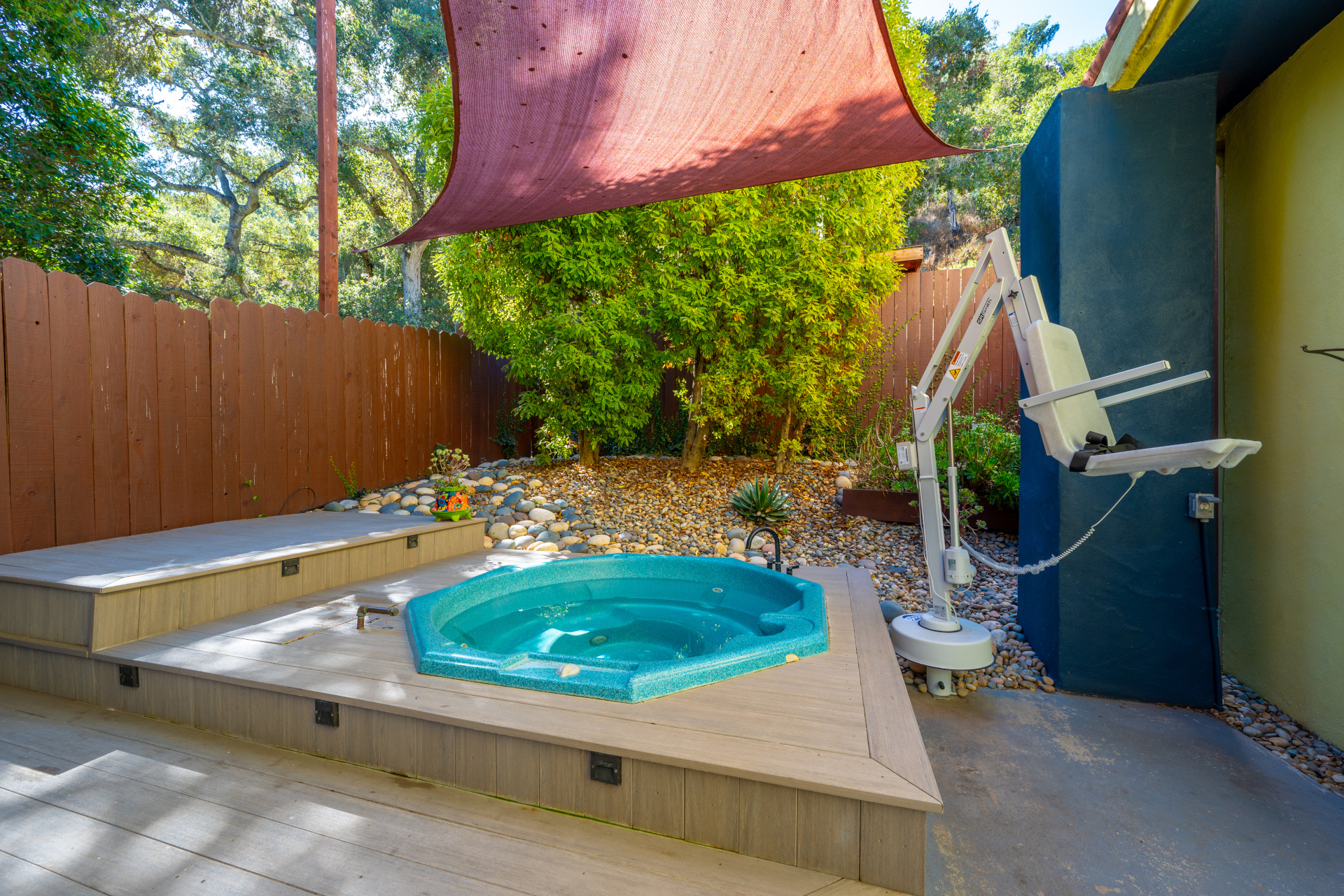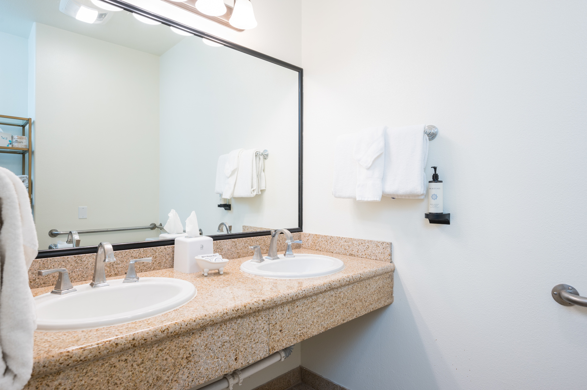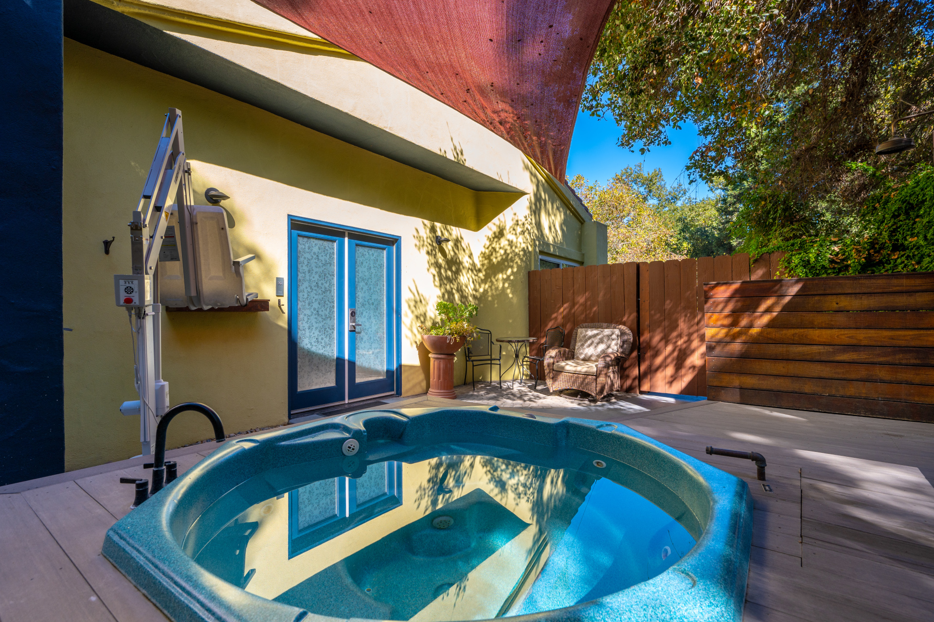 This suite features a self-filled tub with an ADA pool lift. The natural mineral water carries a gentle muted sulfur aroma.