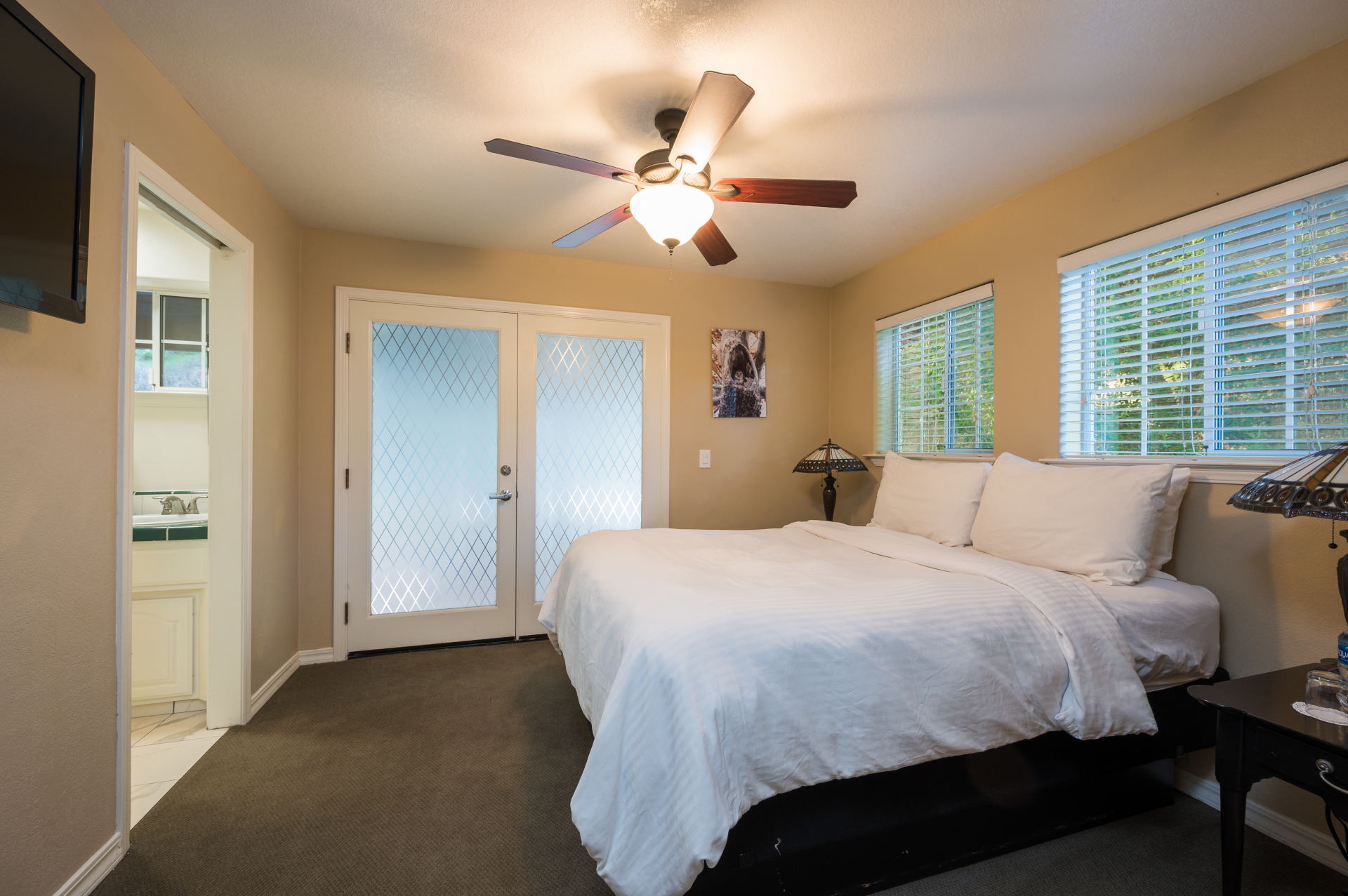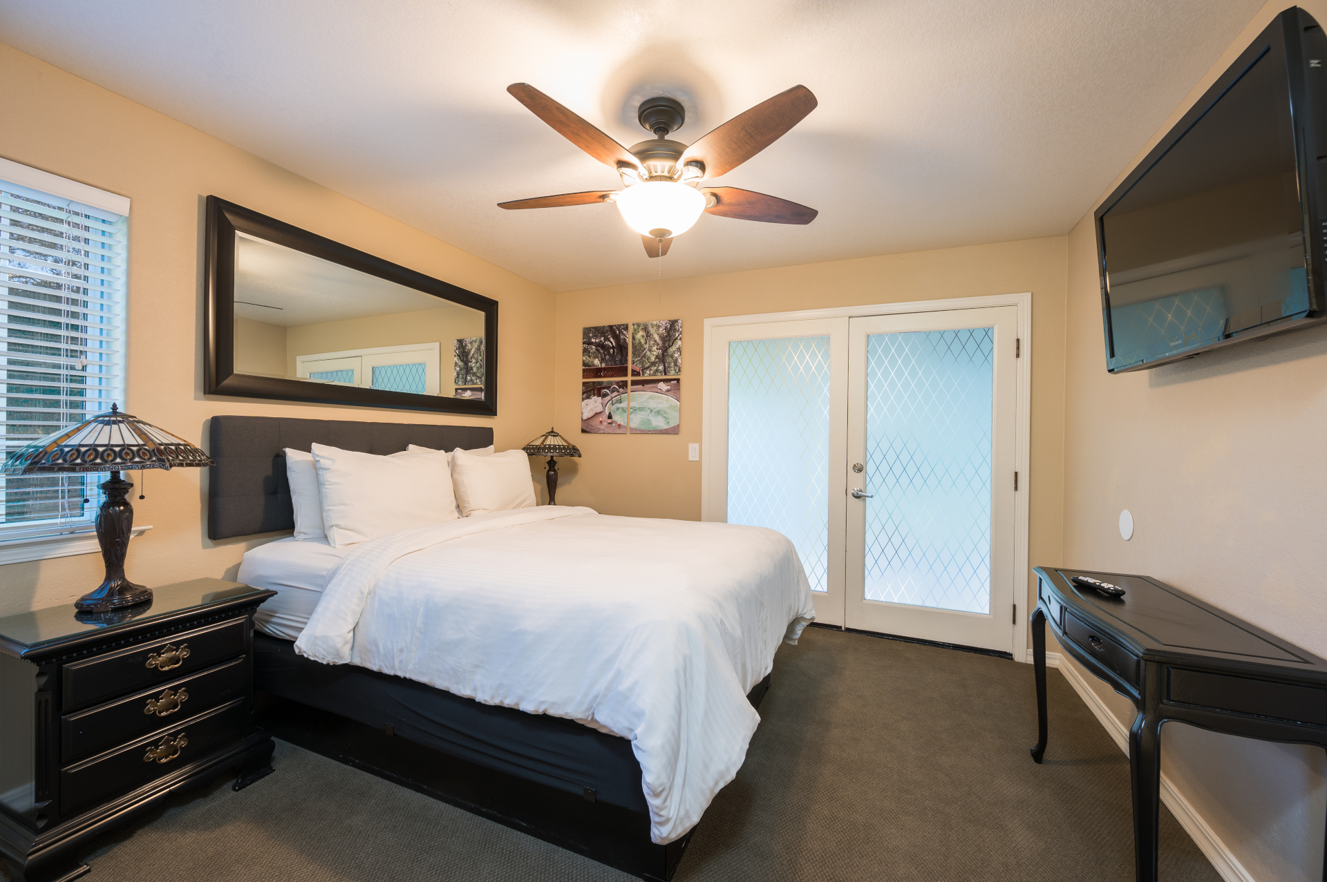 Welcome to Sycamore’s most spacious suites – offering nearly 1,000 sq. ft. of comfort with 2 serene bedrooms, comfortable living area, and convenient kitchenette. Step onto your private balcony to a large mineral spring hot tub with richest most mineral packed water.