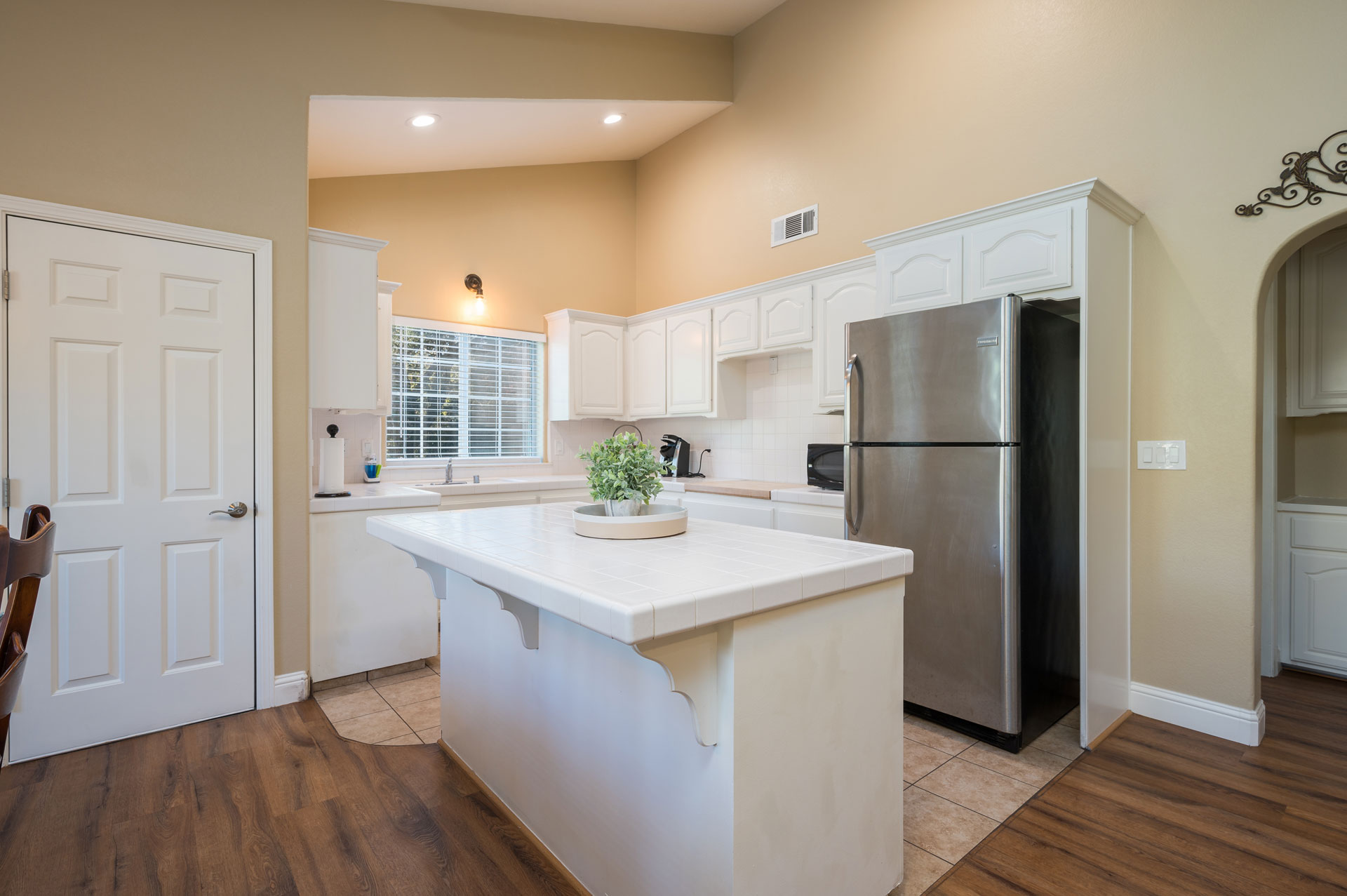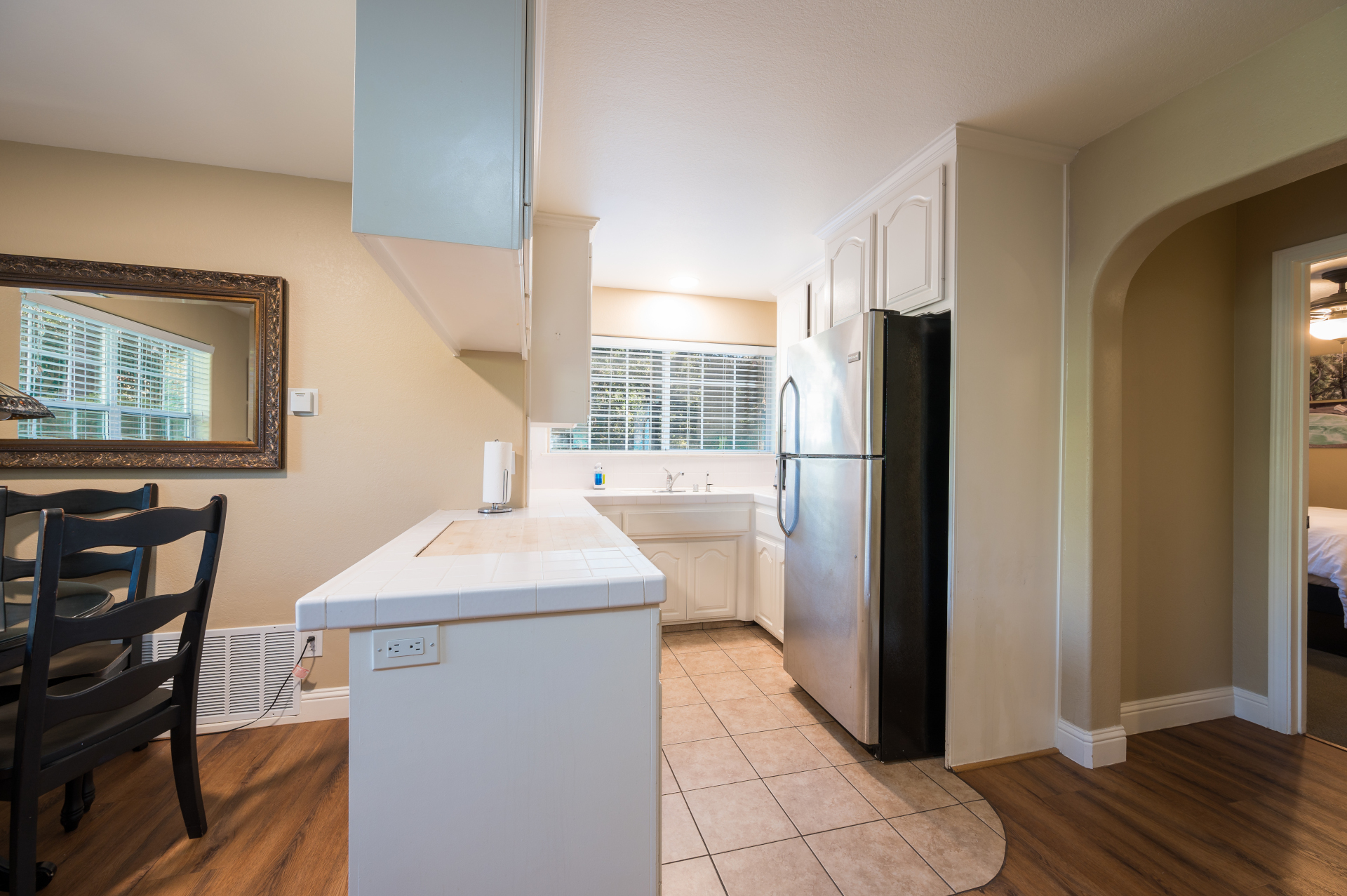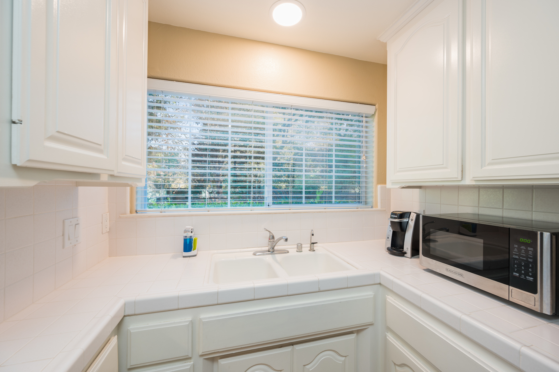 - Kitchenette with sink, microwave, and full-sized fridge (no stove)