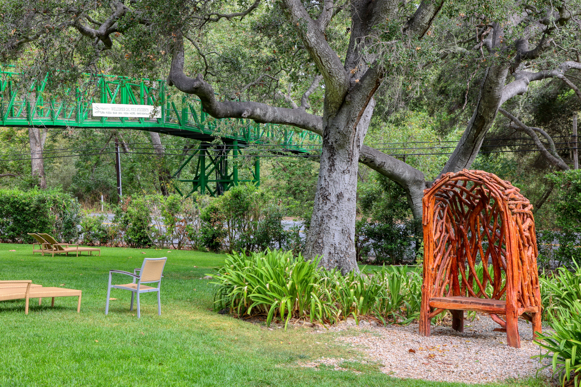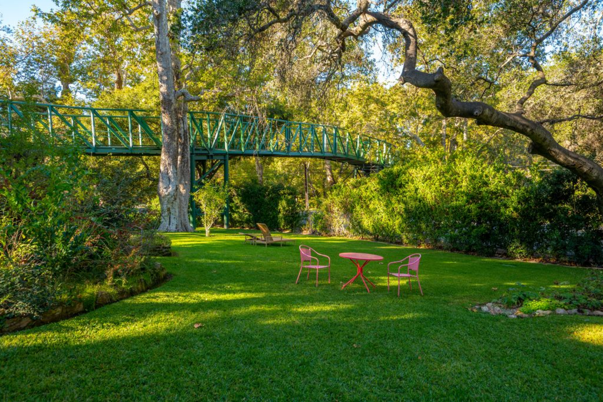 Stop for a scenic photo, lounge under the shade of the tree, and spot birds & bees buzzing by while crossing the iconic green bridge. Walk, breathe, and bloom.